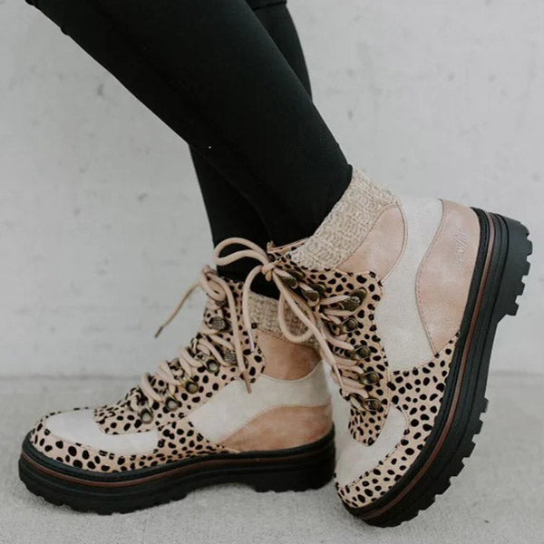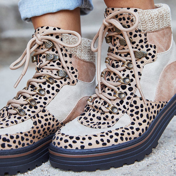 These statement boots combine leopard accents, suede textures, and a chunky sole — blending adventure and elegance in one bold design. The padded ankle and sturdy grip sole make them perfect for everyday comfort with a wild twist.