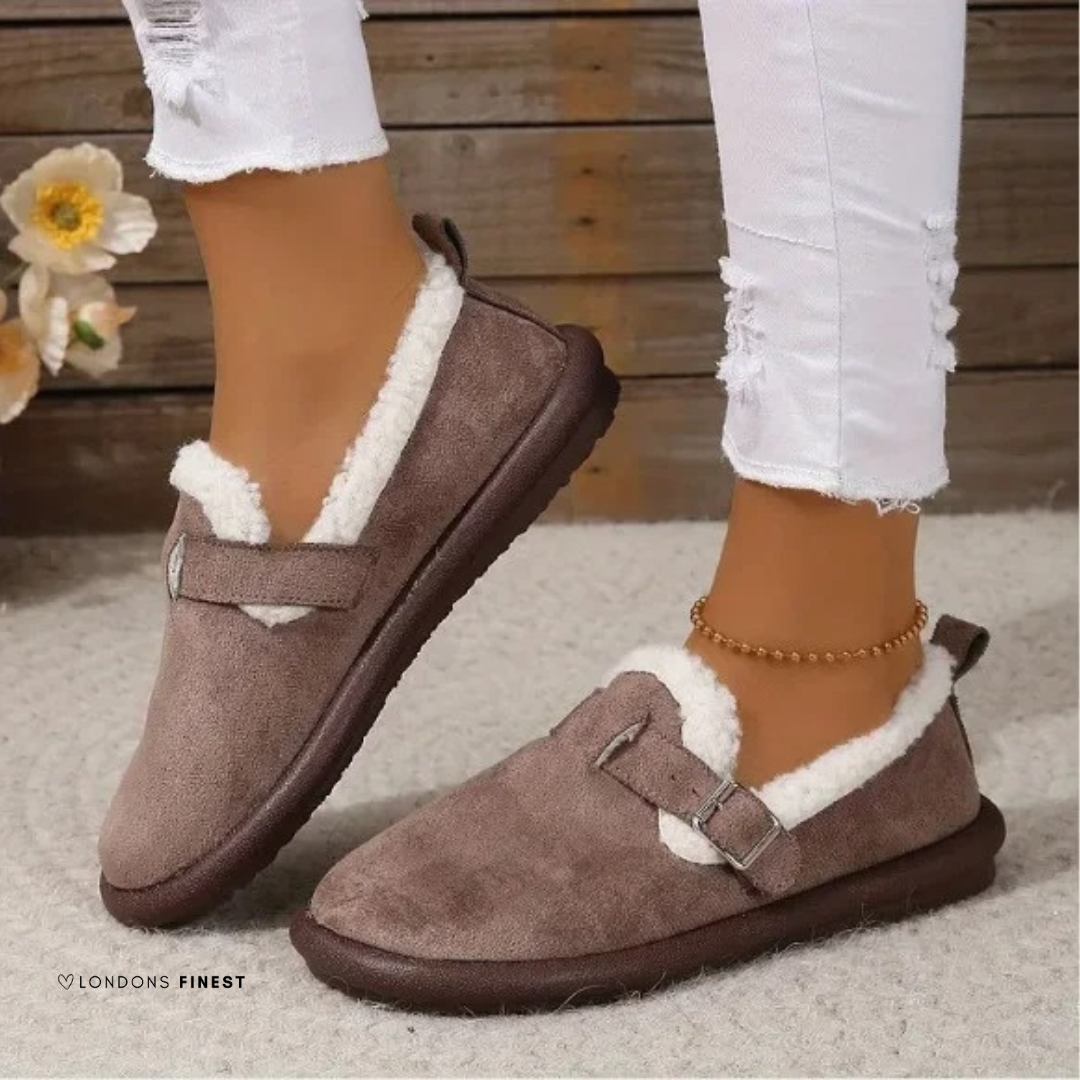 The Catalina™ Adjustable Fleece-Lined Slippers are crafted with a soft fleece lining to keep your feet warm on even the coldest days, featuring an easy slip-on design and adjustable fit for maximum convenience. With a sturdy sole for stability and unmatched coziness, these slippers solve the common pain of cold, uncomfortable footwear, making them the ideal choice.
