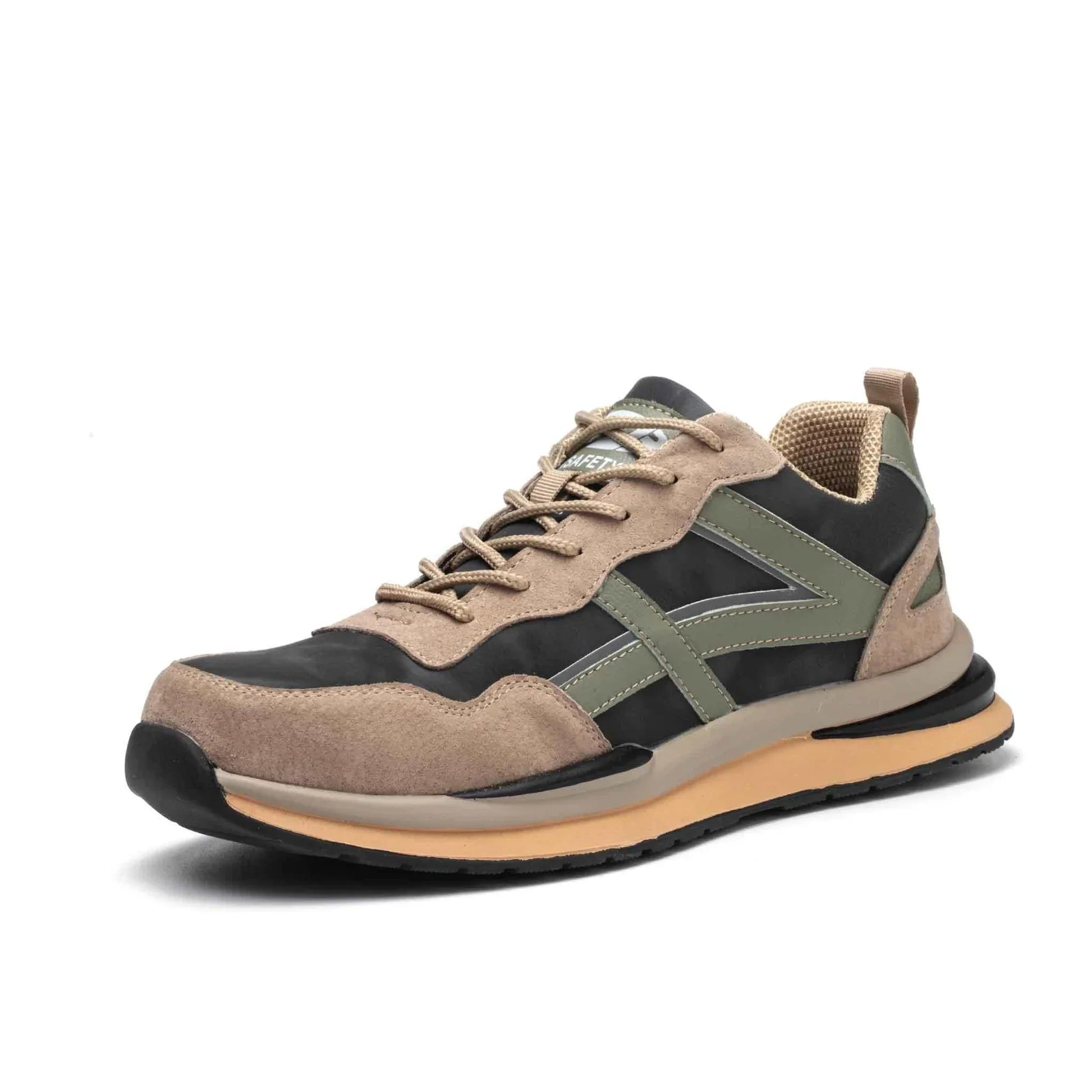 Just because you're wearing work shoes doesn't mean you can't look stylish. These shoes come in an sleek khaki and grey color that's both trendy and eye-catching.
