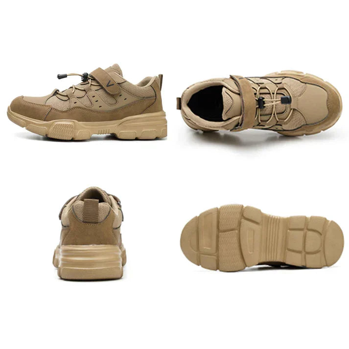 Just because you're wearing work shoes doesn't mean you can't look stylish. These shoes come in a sleek Khaki / Black color that's both trendy and eye-catching. And the lace-up shoelaces ensures better fit.