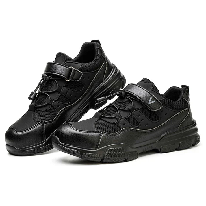 Stay comfortable and cool while maintaining a chic look with our Women's Steel Toe Easy-tie Shoes, crafted with a breathable air mesh upper. Steel toe protection ensures safety from falling objects, while the soft EVA outsoles provide shock absorption and lasting comfort, allowing you to look great without compromising safety.The combination of Elastic Lock shoelaces and Adjustable Velcro straps not only streamlines the wearing process but also adds a modern flair to your footwear collection.