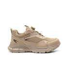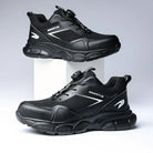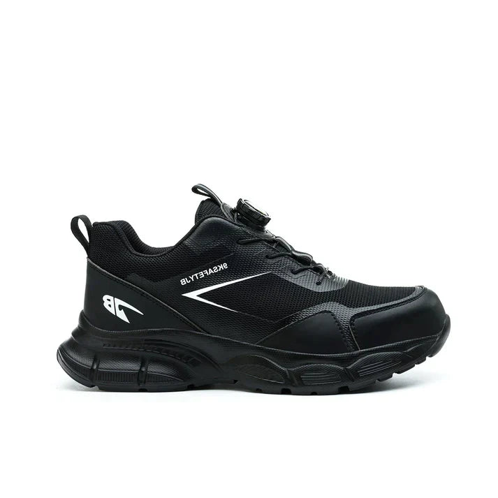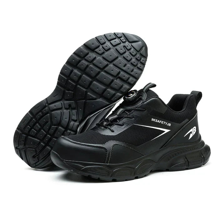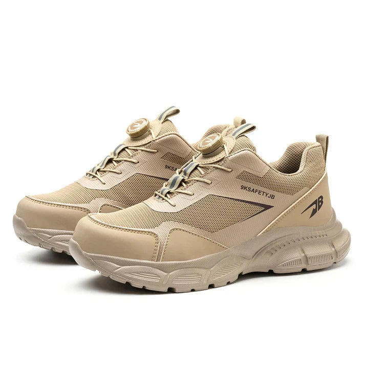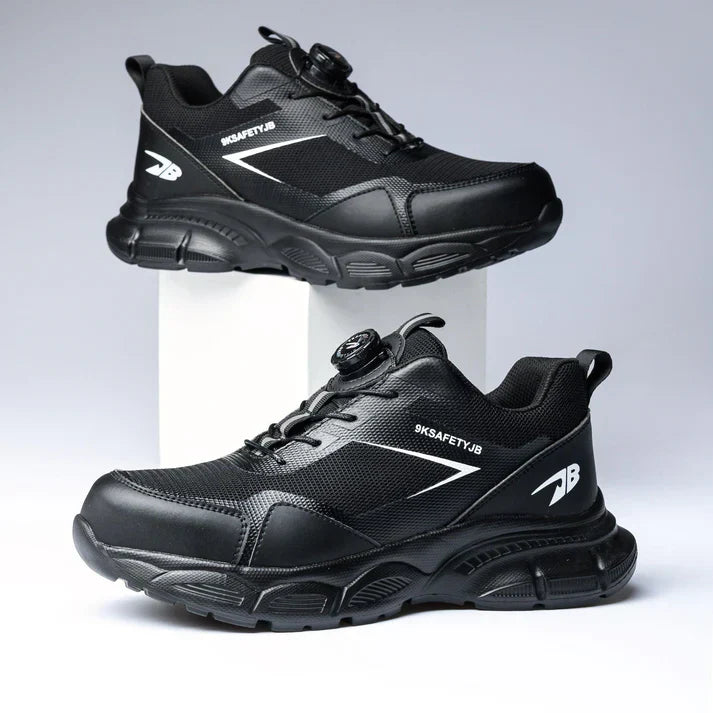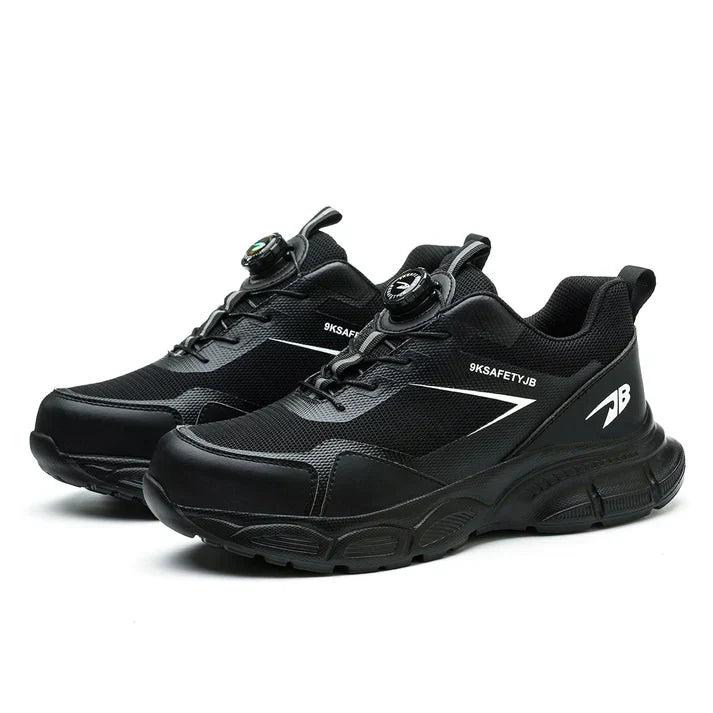 Discover the optimal blend of style and practicality with these sneakers. The mesh and synthetic leather upper allows for ventilation, keeping feet cool and comfortable. Thanks to the unique knob lacing system, slipping these on and adjusting the fit is a breeze. Feel confident with the protective steel toe cap and anti-slip rubber sole, perfect for long workdays. Elevate your work attire with these trendy and functional sneakers that prioritize safety and comfort.