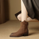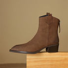 Lifted by a sculpted square heel, these ankle boots blend a structured, pointy profile with a sleek zipper closure and cushioned footbed for polished comfort.