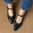 A softly wrapped topline brings a classy touch to this pointy-toe flat, complete with a secure buckle strap and a flexible cushioned footbed for daylong comfort.