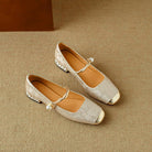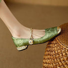 A silky vintage silhouette delicately drapes these pumps, finished with an embellished low heel and a twisted pearl strap, ideal for evenings and special occasions.