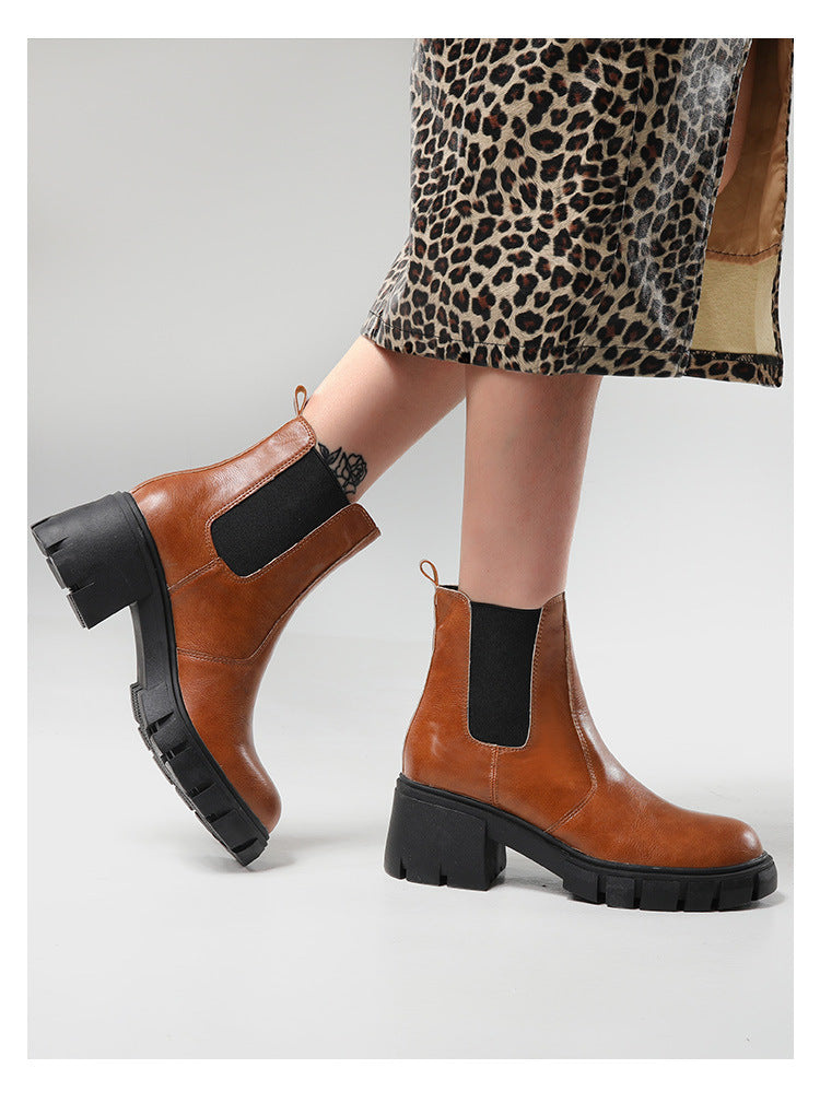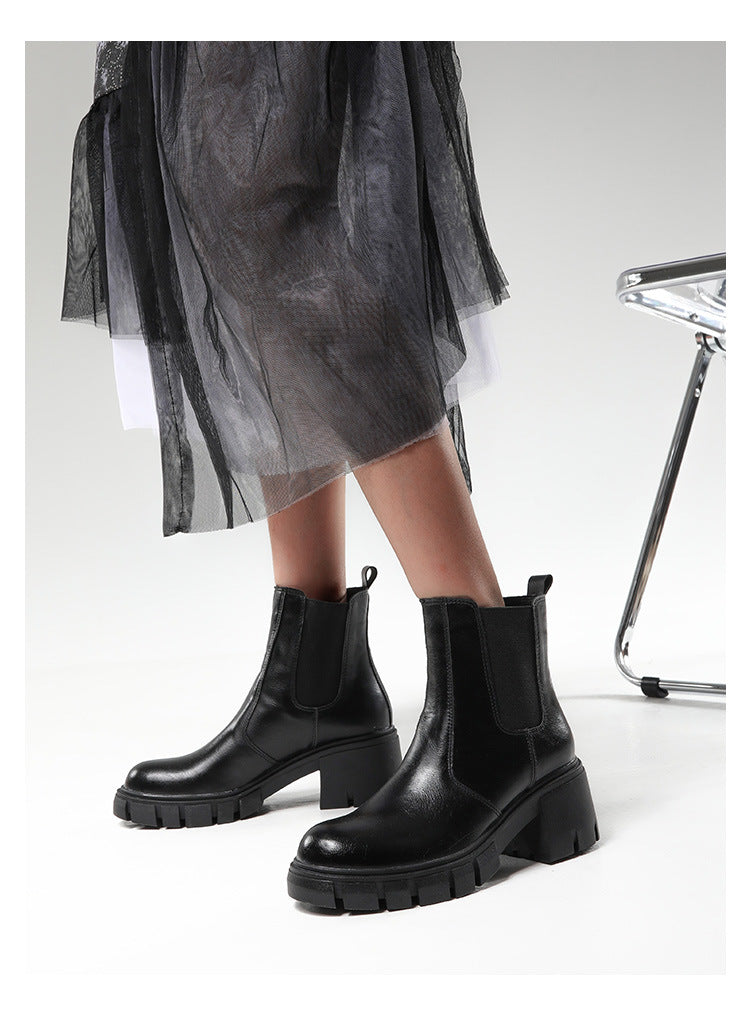 The Aria Boots redefine the classic Chelsea silhouette with a modern chunky sole and glossy finish. Designed for women who love timeless style with a confident edge — perfect for city strolls or evening outings.