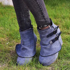 The Bertha Boots combine a sculpted wedge heel with soft suede-look comfort and statement buckle details. Designed for confident women who want height without sacrificing ease — perfect for autumn, winter, and in-between seasons.
