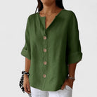 This summer-ready blouse combines relaxed comfort with effortless style. Crafted from a breathable cotton-linen blend, it’s designed to keep you cool, polished, and comfortable — from office hours to weekend outings.