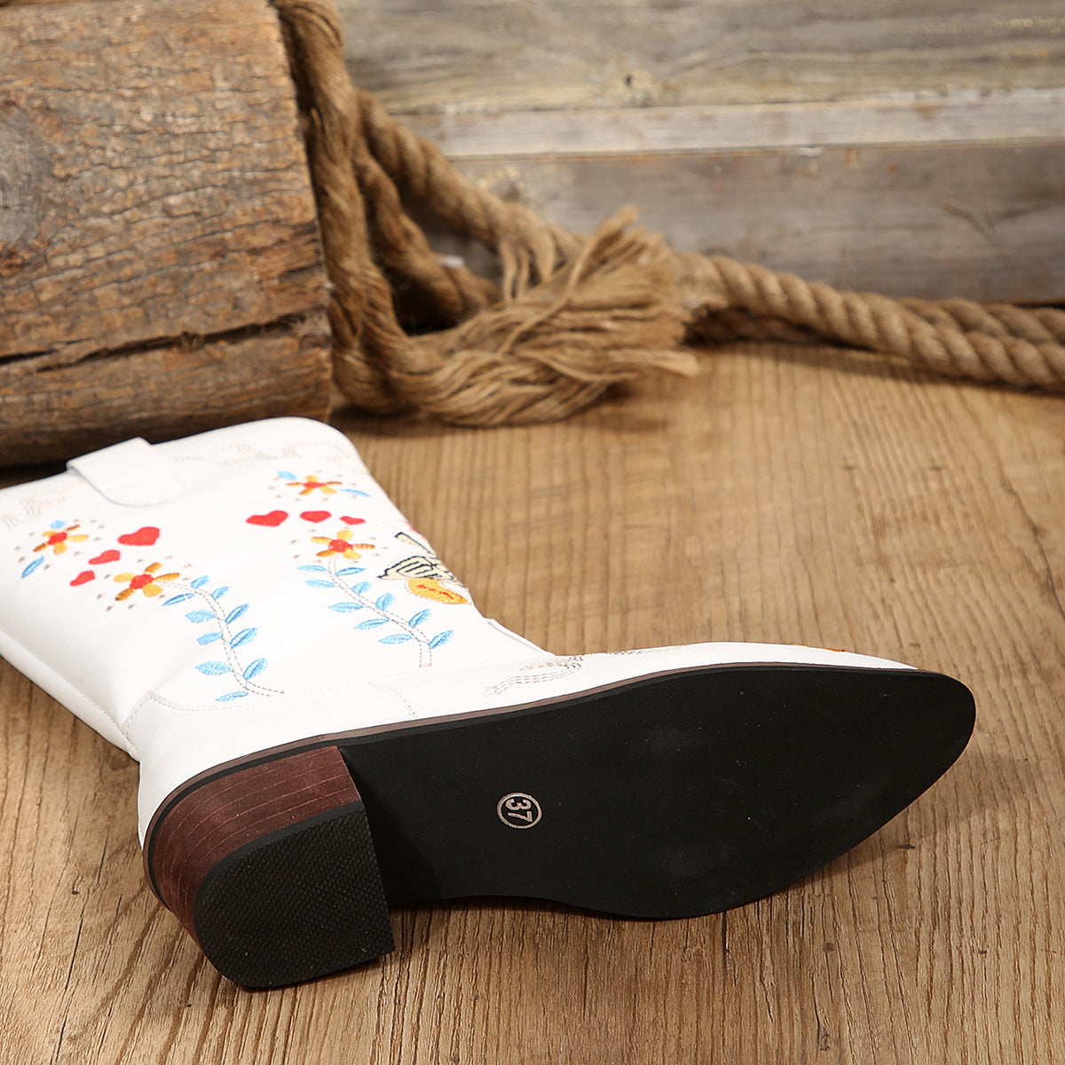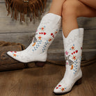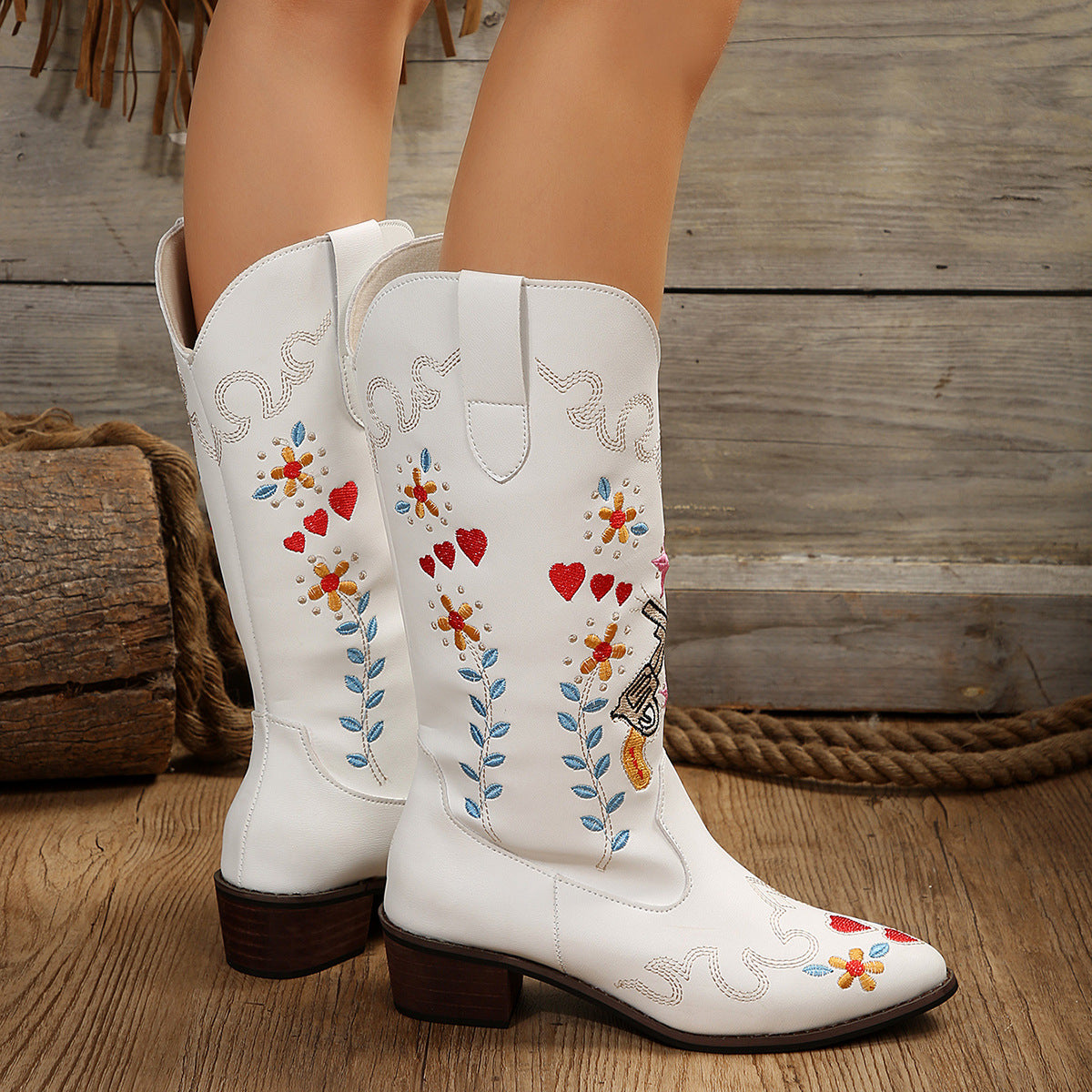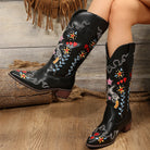The Celeste Boots combine a tall shaft with refined embroidery and a sturdy block heel. With their easy slip-on design, they’re ideal for days when you want both style and comfort.