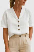 Elevate your summer wardrobe with the Charlie Sophisticated Blouse, where comfort meets style in a chic design perfect for any occasion.