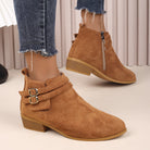 These boots with a pointed toe, square heel, and side zipper offer a modern look with everyday comfort — ideal for work, city trips, or casual days.