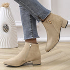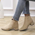 These suede-look ankle boots combine a pointed toe and sturdy heel with a warm, soft lining — perfect for autumn and winter days.