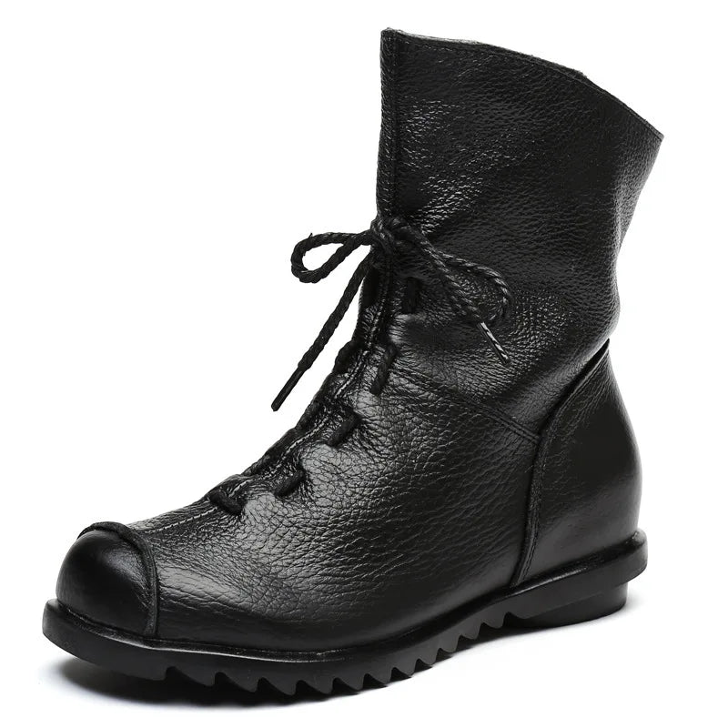 The Fern Boots combine a soft leather-look texture with a flexible design — perfect for busy days when comfort and style go hand in hand. The lace-up front and side zipper offer a secure fit, while the lightweight sole keeps every step effortless.