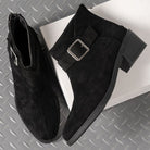The Frey Boots combine a suede-look finish with firm grip and a sturdy block heel. The back zipper makes them easy to slip on — perfect for chilly winter days.