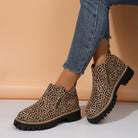 These leopard short boots with a pointed toe and low heel add instant character to your outfit while remaining comfortable enough for everyday wear.