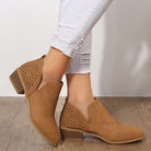 These pointed boots combine a vintage look with subtle studs and a low block heel — stylish and effortlessly wearable, day after day.