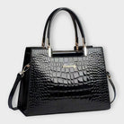 Step out in style with the Olivia - Glossy Crocodile Pattern Handbag, the perfect blend of luxury and practicality for the modern woman.