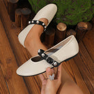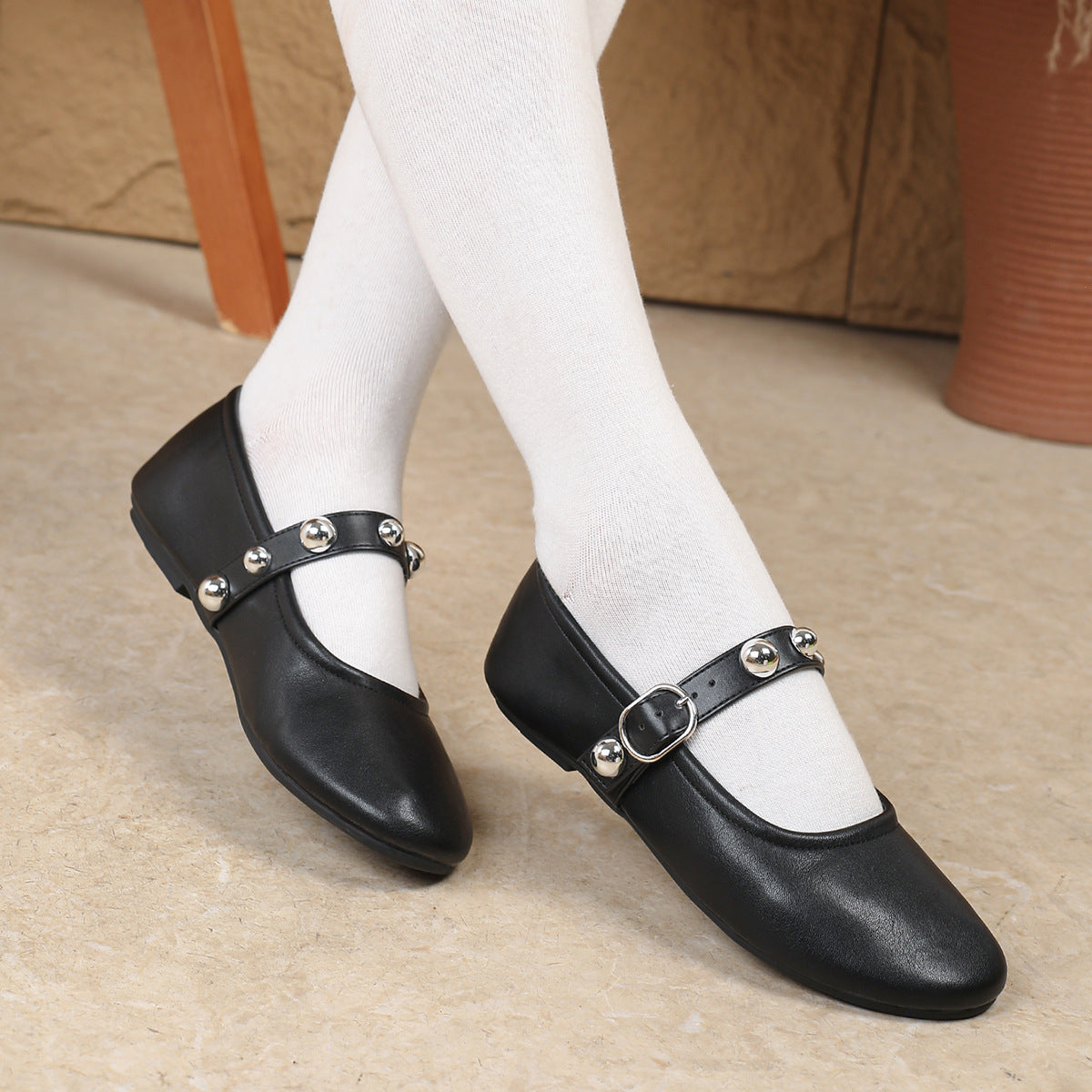 These leather ballerinas with subtle studs combine a refined look with everyday comfort — perfect for work, family visits, or a day in the city.