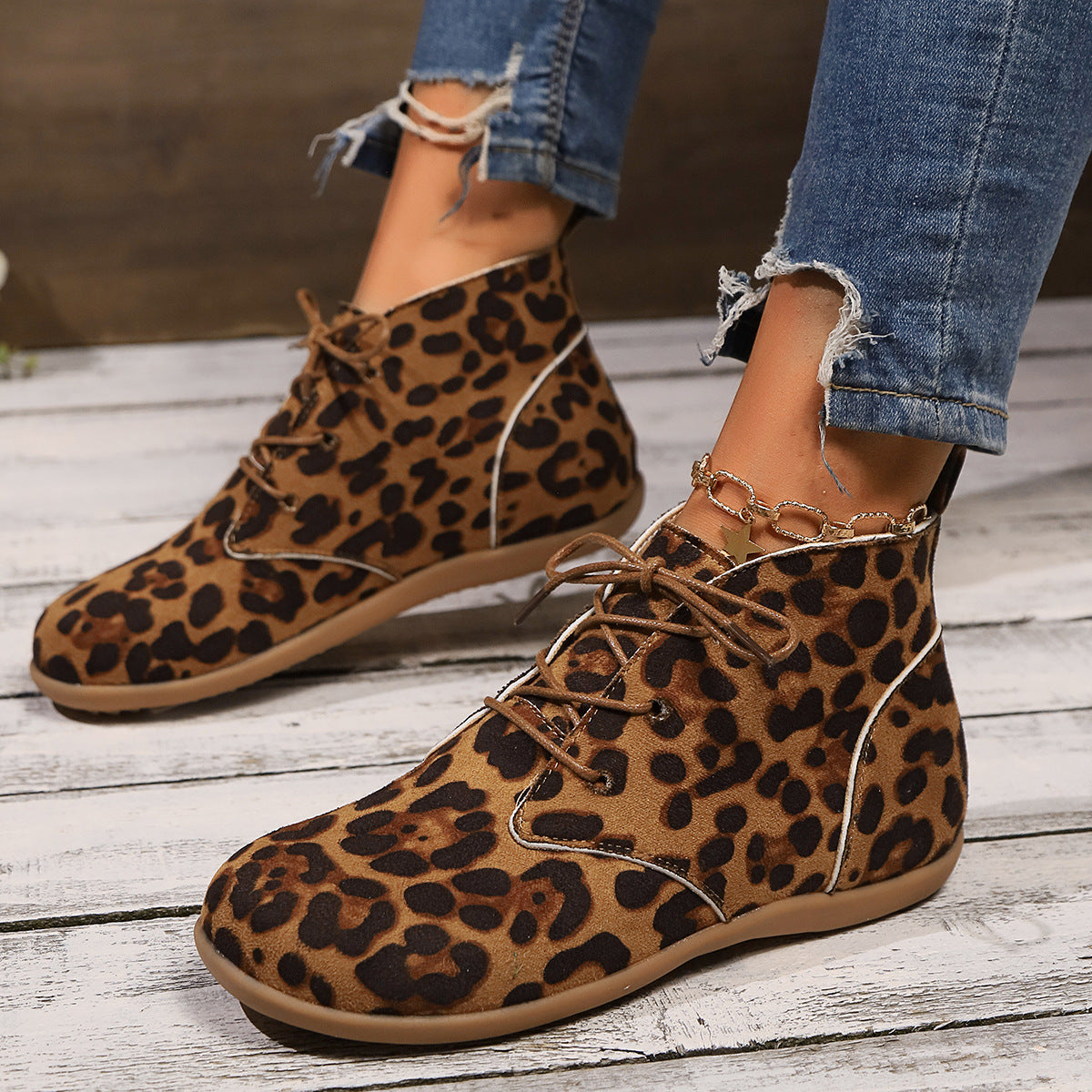 These lace-up boots with a leopard print and flat sole give you a relaxed look with a bold twist — ideal for everyday wear.
