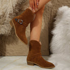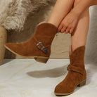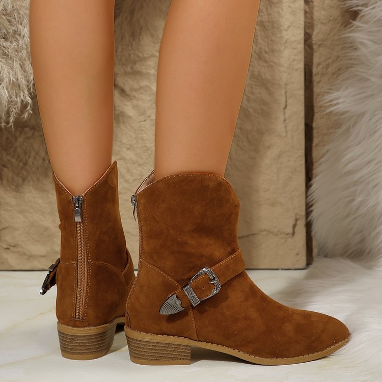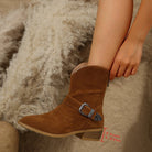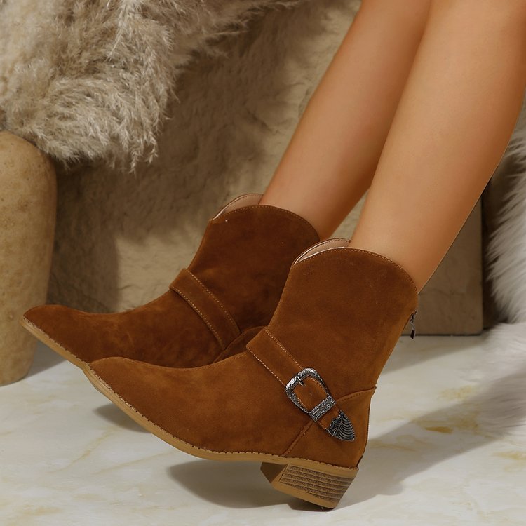 These suede-look Martin boots with a pointed toe and stylish buckle combine fashion and comfort effortlessly. Perfect for autumn and winter, whether casual or chic.
