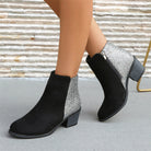 These low ankle boots with a subtle glitter finish, round toe, and sturdy block heel give your everyday look a stylish lift.