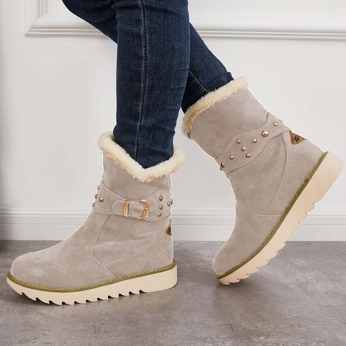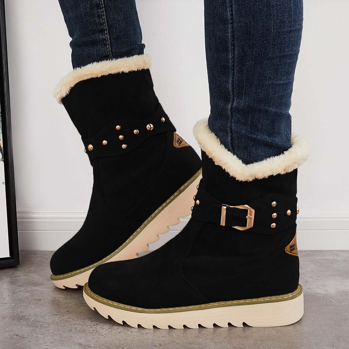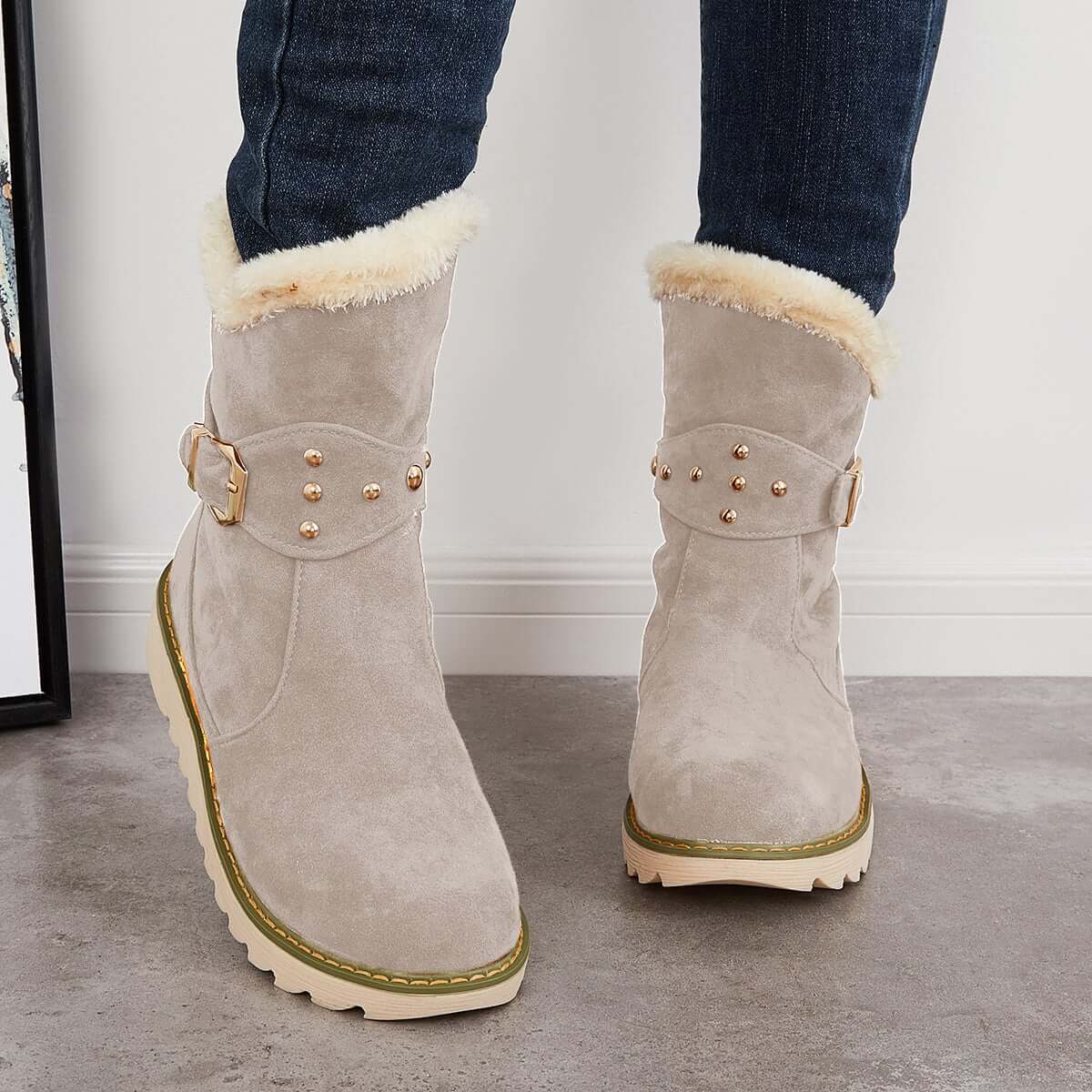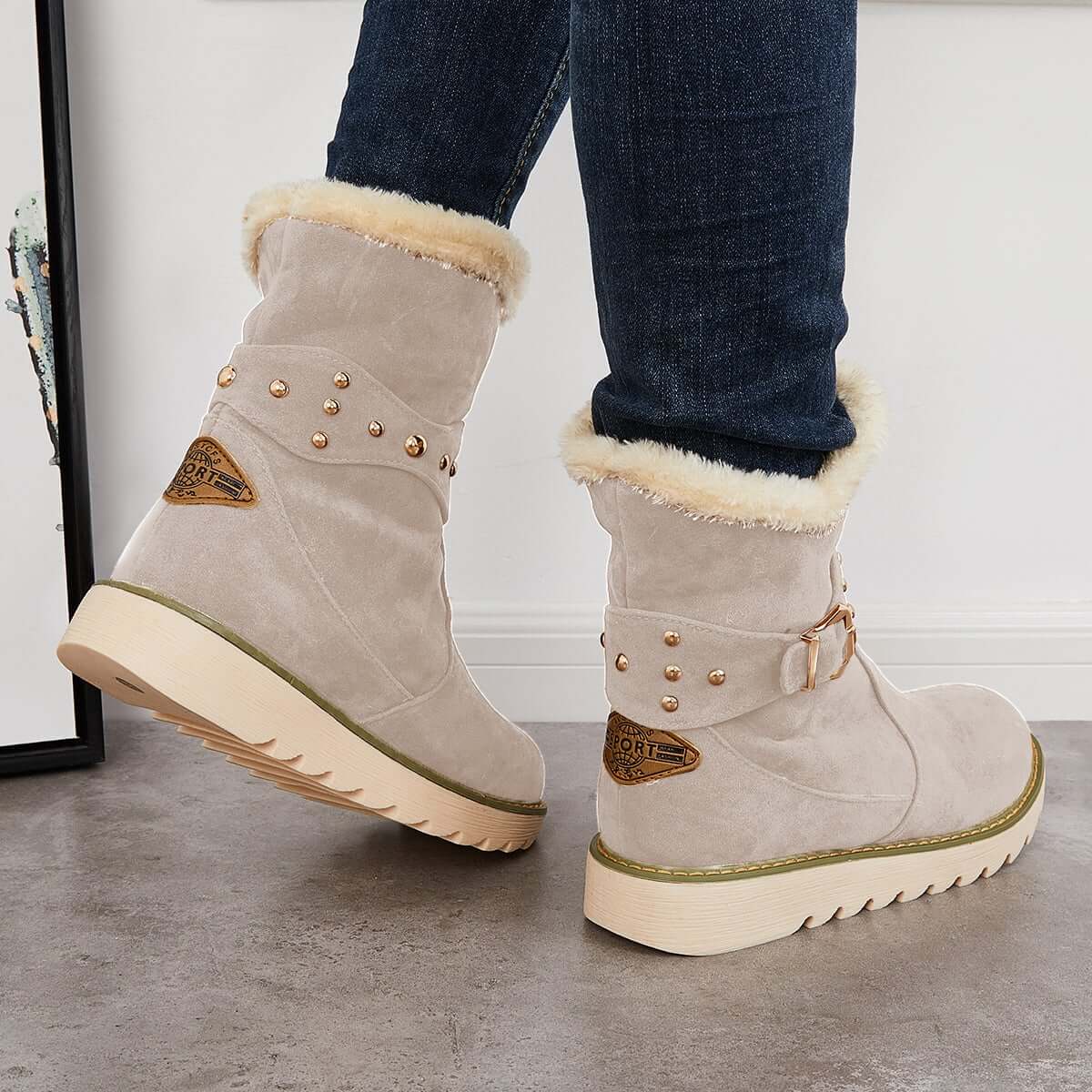 Non Slip Snow Ankle Boots Warm Fur Lined Slip on Booties