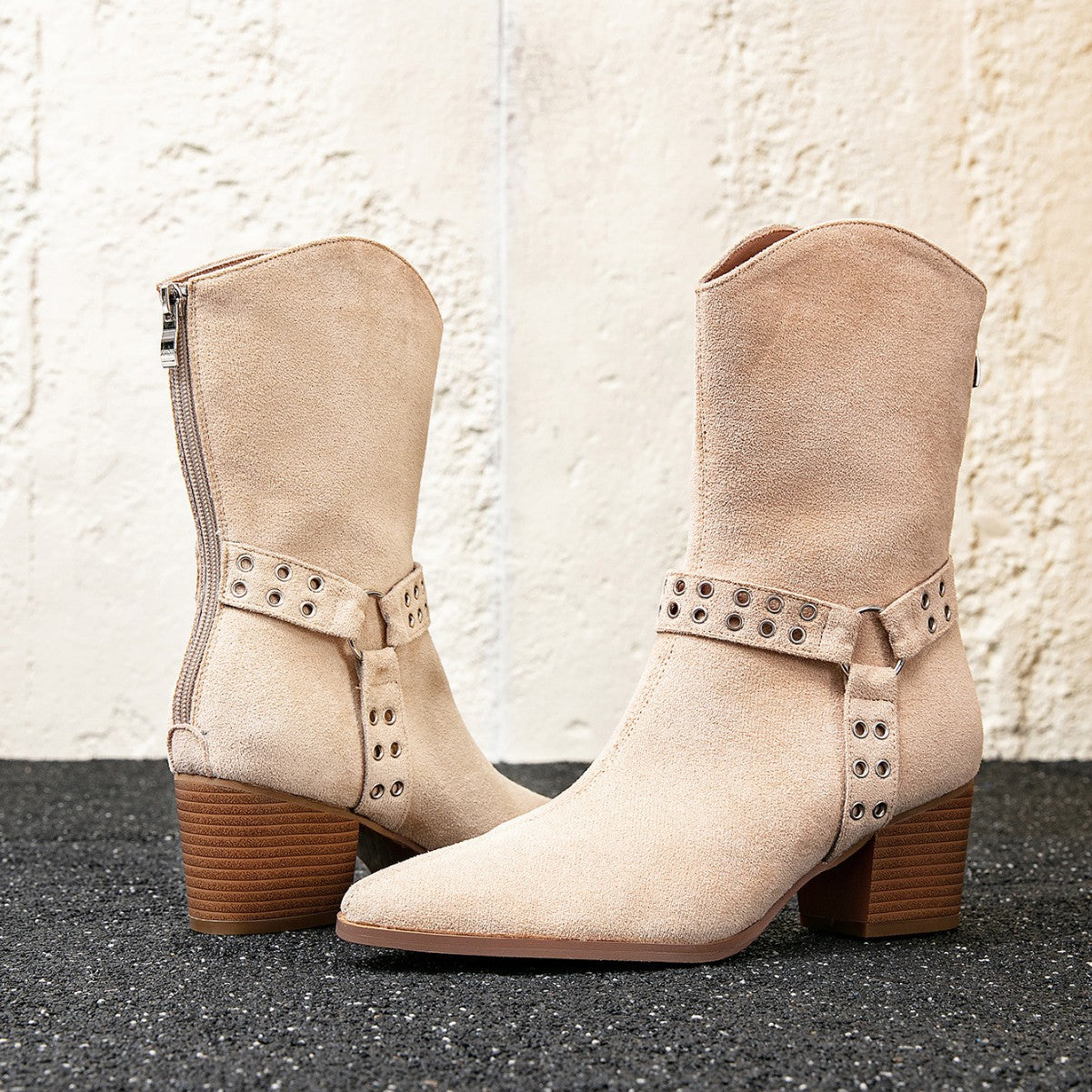 These suede-look mid-calf boots with a pointed toe and sturdy heel elevate your outfit with elegance — without sacrificing comfort. Perfect for stylish winter looks.