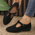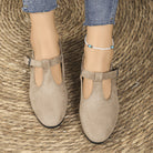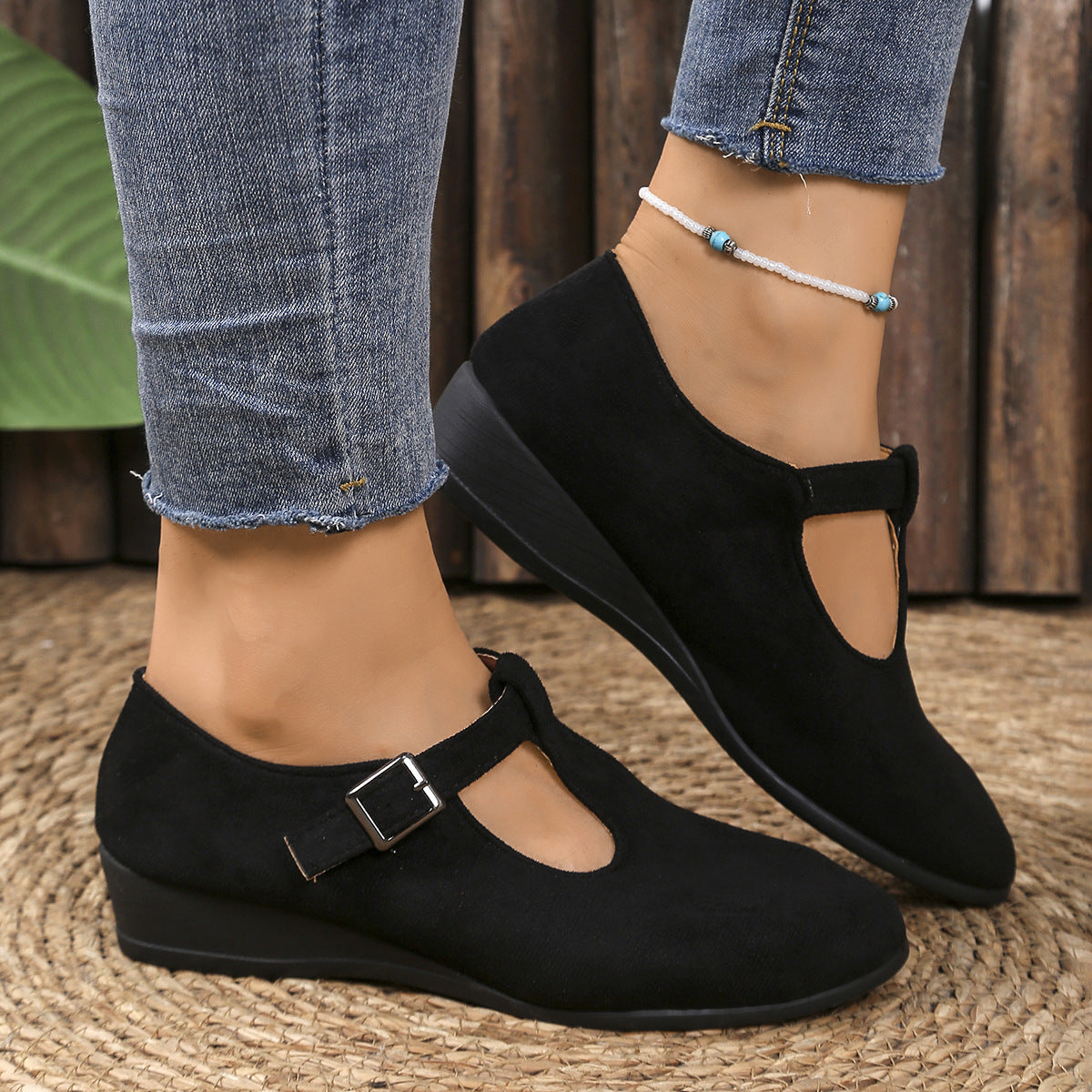 This pointed-toe ballerina with a mid block heel and adjustable buckle adds a refined, feminine touch to your look — perfect for everyday wear or more polished occasions.