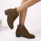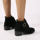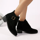 These suede-look ankle boots with a pointed toe and sturdy block heel are the perfect blend of comfort and style.