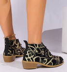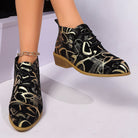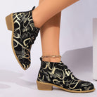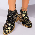 These short boots with subtle embroidery and a low block heel bring a touch of vintage charm to your outfit without compromising on comfort. Ideal for everyday wear.