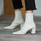 Elevate your evening attire with an elegant touch in these square-toe ankle boots poised elegantly upon a cushioned insole and a tapered block heel.